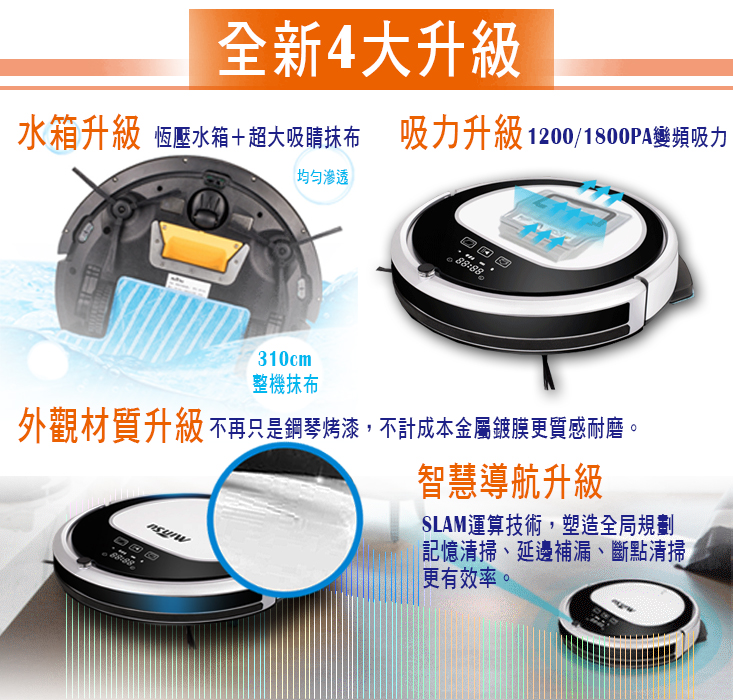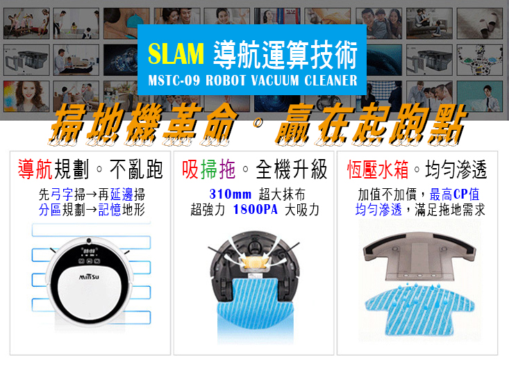【Minsu】掃/拖兩用 高階導航智慧掃地機器人 (加贈拖地水箱+永久免費耗材)-結帳輸入【R2000】立即現抵2000,智慧導航系統,導航機不破萬,CP值最高,讓您一次滿足家居環境17Life‧天天 售價:9650